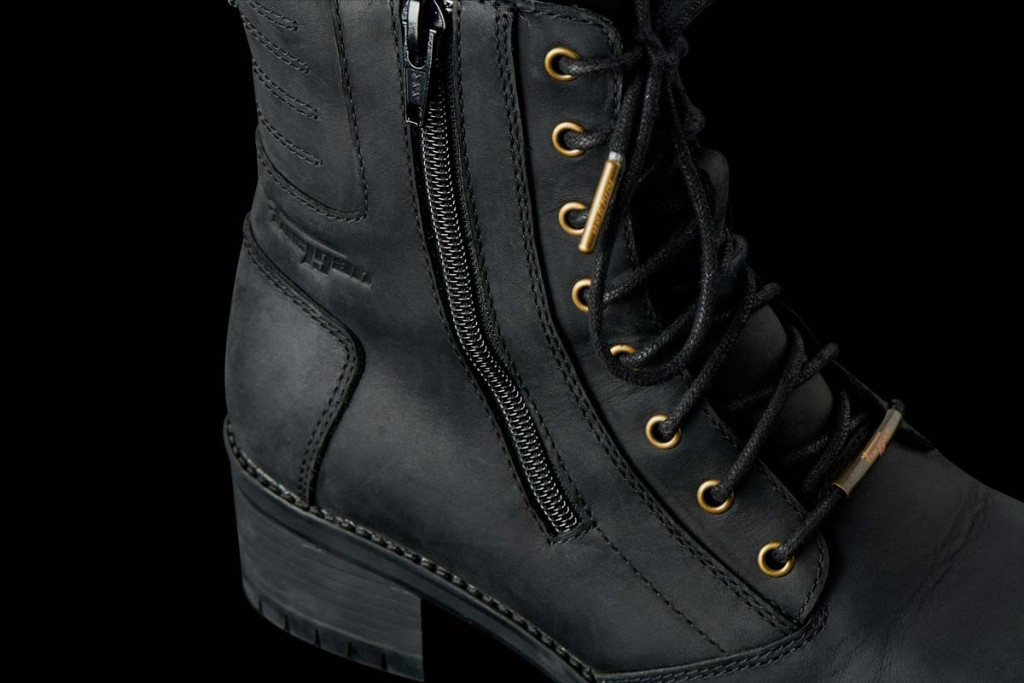 Janis este o ghetă de motocicletă din piele impermeabilă și protectoare, concepută pentru a te însoți atât pe motocicletă, cât și în afara ei. Practică, confortabilă și protectoare, Janis are un aspect atemporal care îndeplinește standardele încălțămintei de calitate. - O clapă în spatele călcâiului facilitează încălțarea. - Înălțimea tocului: 4 cm. - Fermoar lateral pe exteriorul piciorului pentru a evita zgârierea motocicletei. Piele de vacă. Cauciuc. Părțile de cauciuc oferă o aderență bună datorită unui strat antiderapant unic. Fermoar lateral. Facilitează încălțarea și menține șireturile la locul lor pentru o potrivire uniformă. Material rezistent la abraziune pentru schimbătorul de viteze. Brant interior detașabil. Membrană impermeabilă și respirabilă. 100% piele de vacă