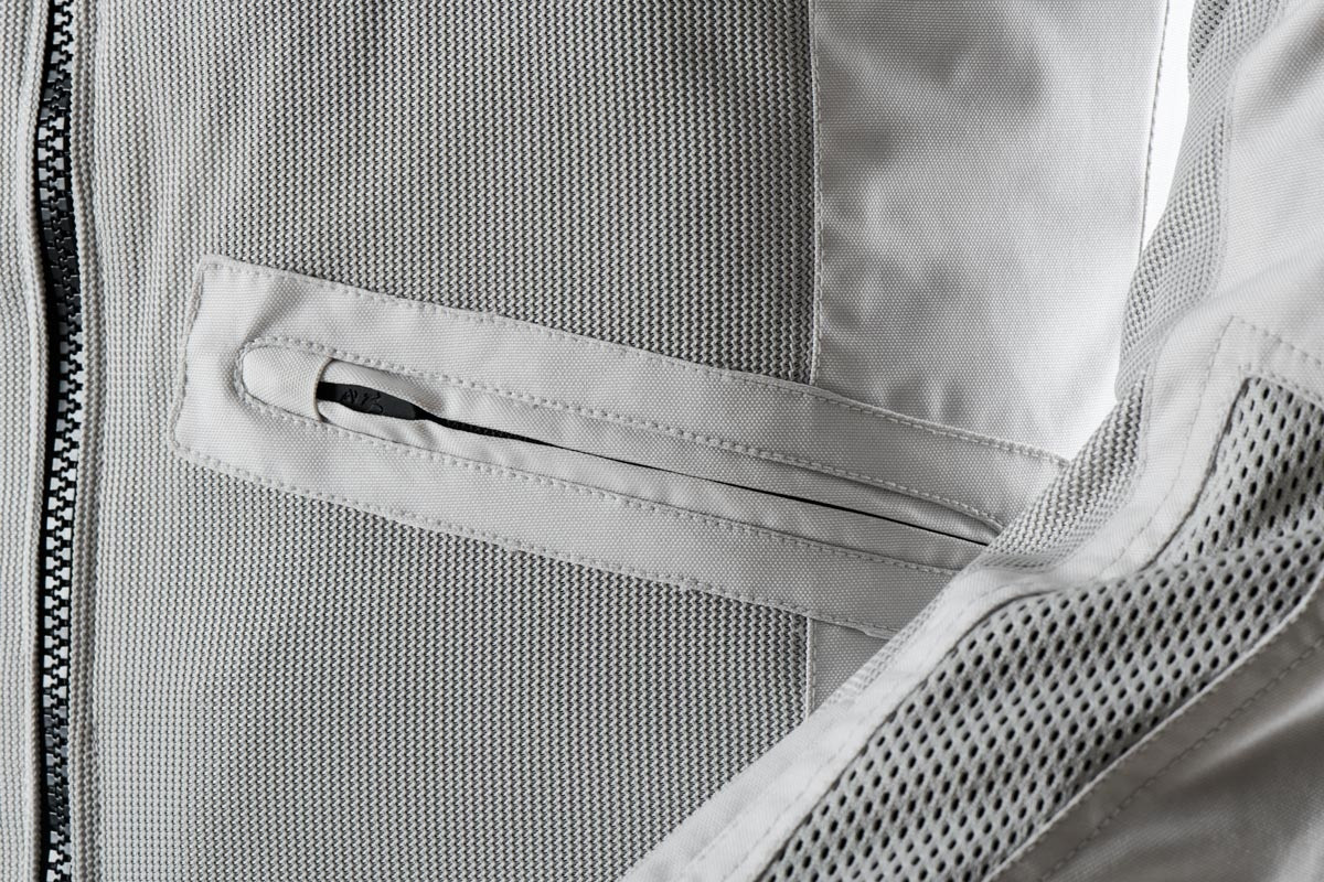 Textil Plasa, prezentă în panouri mari și plasate optim, permite o circulație a aerului crescută prin îmbrăcăminte și respirabilitate maximă. 100% Poliester