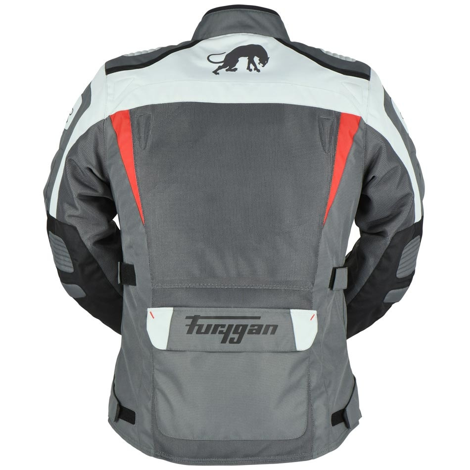 6 exterioare, inclusiv un buzunar rapid pentru card de credit pe mânecă, și 4 interioare, inclusiv 2 impermeabile. Mai multe clapete de ajustare. Pentru a se potrivi tuturor formelor și mărimilor. Fermoar de conectare a pantalonilor. Conector cu fermoar de la pantalonii Furygan la jachetă pe toate produsele cBarbatipatibile cu pielea și textilele. Căptușeală 2W1. Căptușeală termică, impermeabilă, respirabilă și detașabilă. 100% poliester