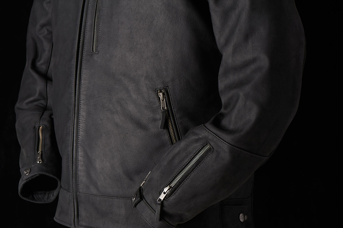 Clinuri în spatele umerilor. Pentru confort și mobilitate sporite atunci când vă urcați în poziția de conduS Căptușeală termică detașabilă. 100% piele de bivoL