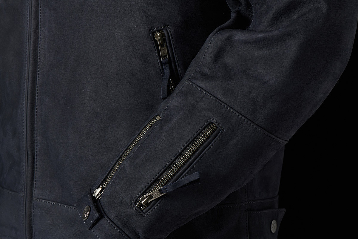Clinuri în spatele umerilor. Pentru confort și mobilitate sporite atunci când vă urcați în poziția de conduS Căptușeală termică detașabilă. 100% piele de bivoL
