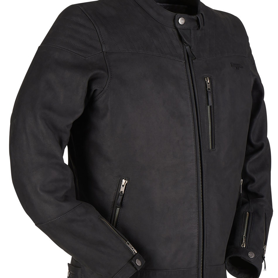 Clinuri în spatele umerilor. Pentru confort și mobilitate sporite atunci când vă urcați în poziția de conduS Căptușeală termică detașabilă. 100% piele de bivoL