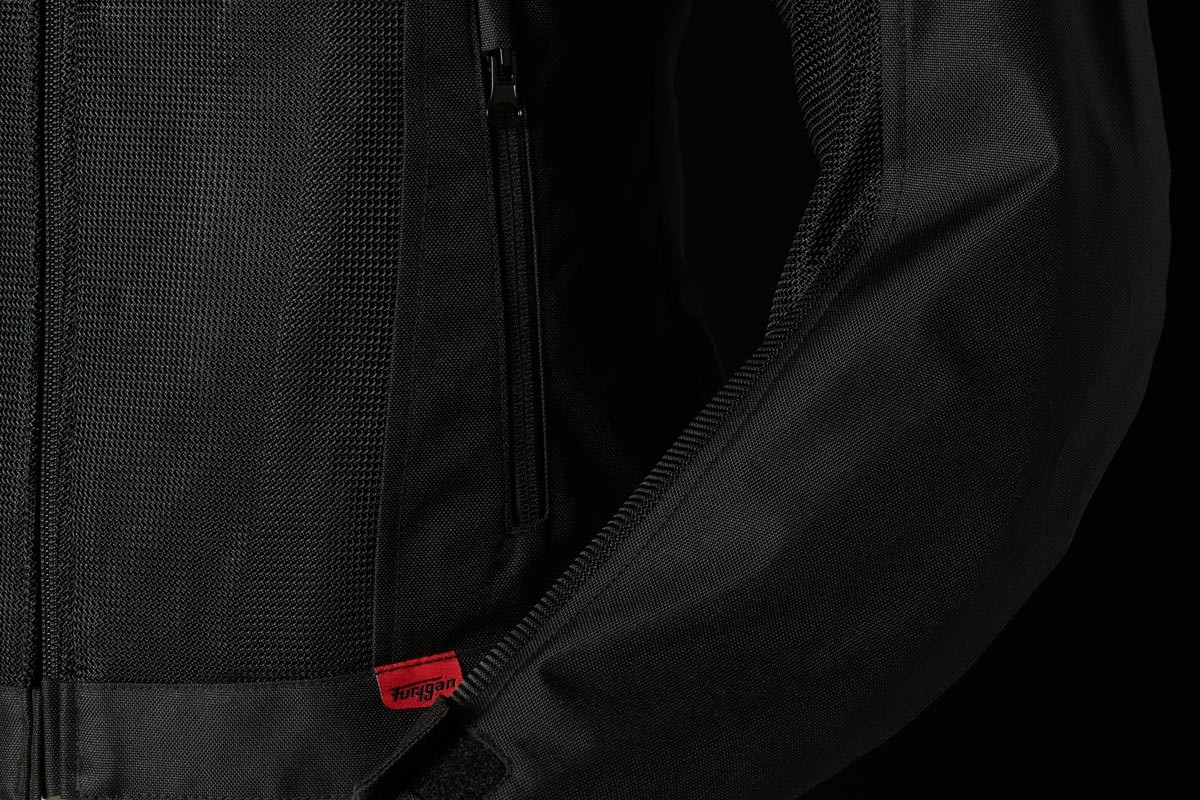 Textil Plasa, prezentă în panouri mari și plasată optim, permite o circulație a aerului crescută prin îmbrăcăminte și respirabilitate maximă. 100% Poliester