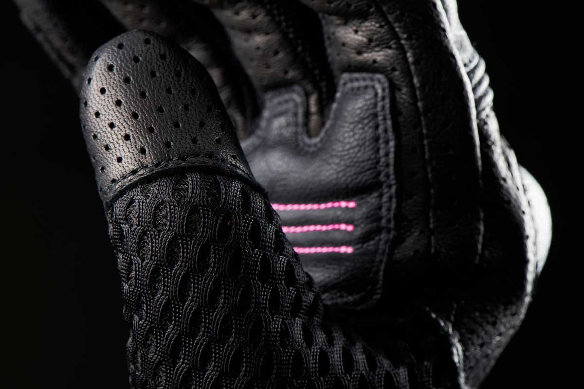 Mănușa TD Air Lady este o mănușă sportivă care își datorează numele zonelor mari de plasă 3D și piele perforată încorporate în designul său. Amestecul de materiale oferă flexibilitate, confort și ergonomie pentru o versatilitate excelentă în toate condițiile. - Combinația de plasă 3D și piele perforată conferă acestei perechi de mănuși o flexibilitate suplimentară, ceea ce se traduce printr-un confort și o dexteritate sporite pe ghidon. Piele de capră perforată. Combinând suplețea și rezistența, pielea de capră oferă o protecție de primă clasă, oferind în același timp o senzație de neegalat pentru ghidon. Plasă. Preformată. Strângere precisă a încheieturii mâinii. Pentru mănuși care se potrivesc întotdeauna perfect. Se întinde pe degete. Pentru mobilitate optimă la manipularea comenzilor. Perforații plasate și ventilație. Deschiderile și perforațiile au fost plasate pentru a optimiza fluxul de aer prin mănușă, fără a compromite siguranța.