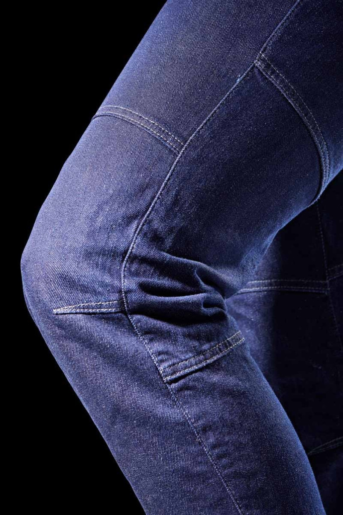 - Nivelul de certificare este indicat datorită unui nou sistem de cusături pe buzunarul pentru bilet. Denim elastic din bumbac. Fibre de aramidă. Ușoară și rezistentă la căldură, fibra de aramidă întărește materialele cu care este utilizată împotriva abraziunii și încetinește transferul de căldură către piele. Închidere cu nasturi. Protecții reglabile pentru genunchi. Croială conică. Această croială începe lejeră la nivelul pelvisului și se îngustează spre partea de joS Menține confortul esențial pentru motocicliști, îmbunătățind în același timp silueta. Material elastic. Pentru o ușurință maximă de mișcare pe bicicletă și în viața de zi cu zi. Construcție externă monostrat. Permite o circulație mai bună a aerului vara. 98% bumbac; 2% elastan