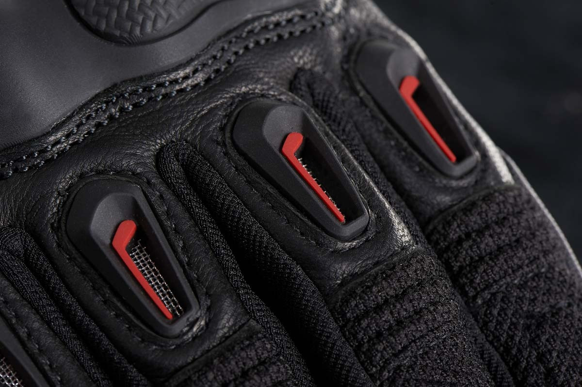 Preformate. Strângere precisă a încheieturii mâinii. Pentru mănuși care se potrivesc întotdeauna perfect. Se întinde pe degete. Pentru mobilitate optimă la manipularea comenzilor. Ventilate. Pentru fluxul de aer care face față creșterii temperaturilor. 41% poliester; 33% piele de capră; 21% poliuretan; 5% poliamidă