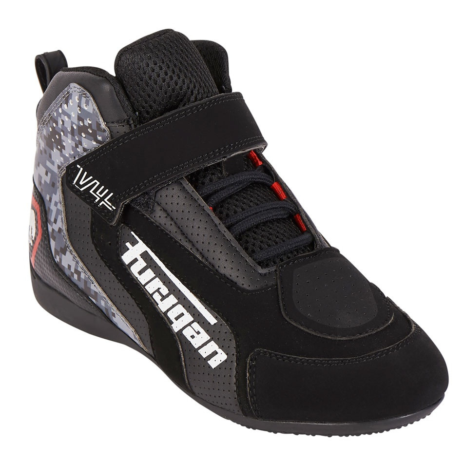 Cu pantofii V4 Vented, Furygan își arată dorința de a oferi un pantof confortabil, ventilat, omologat CE, cu un aspect urban și sportiv, accesibil unui număr cât mai mare de persoane. - O clapă în spatele călcâiului facilitează încălțarea. Piele sintetică PU. Poliuretan. Cauciuc. Părțile din cauciuc oferă o aderență bună datorită unui strat antiderapant unic. Microfibră sintetică. Mai subțire decât un fir de mătase, fibra sintetică hidrofugă din care este fabricată această țesătură oferă confort, ventilație și durabilitate de neegalat. Protecție schimbător de viteze. Brant interior detașabil. Panouri laterale și limbă perforate. Pentru a facilita o bună ventilație a pantofului. 70% poliuretan; 30% poliamidă