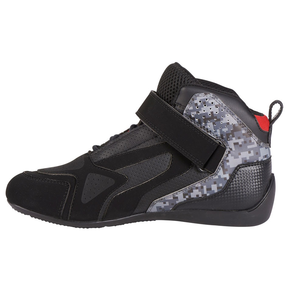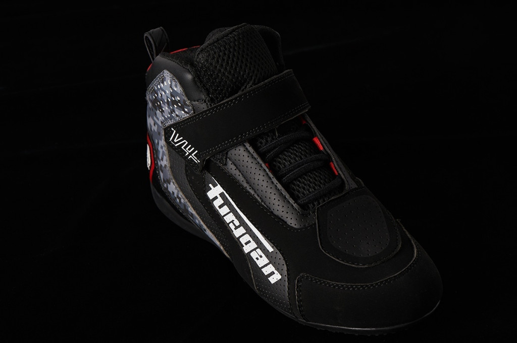 Cu pantofii V4 Vented, Furygan își arată dorința de a oferi un pantof confortabil, ventilat, omologat CE, cu un aspect urban și sportiv, accesibil unui număr cât mai mare de persoane. - O clapă în spatele călcâiului facilitează încălțarea. Piele sintetică PU. Poliuretan. Cauciuc. Părțile din cauciuc oferă o aderență bună datorită unui strat antiderapant unic. Microfibră sintetică. Mai subțire decât un fir de mătase, fibra sintetică hidrofugă din care este fabricată această țesătură oferă confort, ventilație și durabilitate de neegalat. Protecție schimbător de viteze. Brant interior detașabil. Panouri laterale și limbă perforate. Pentru a facilita o bună ventilație a pantofului. 70% poliuretan; 30% poliamidă