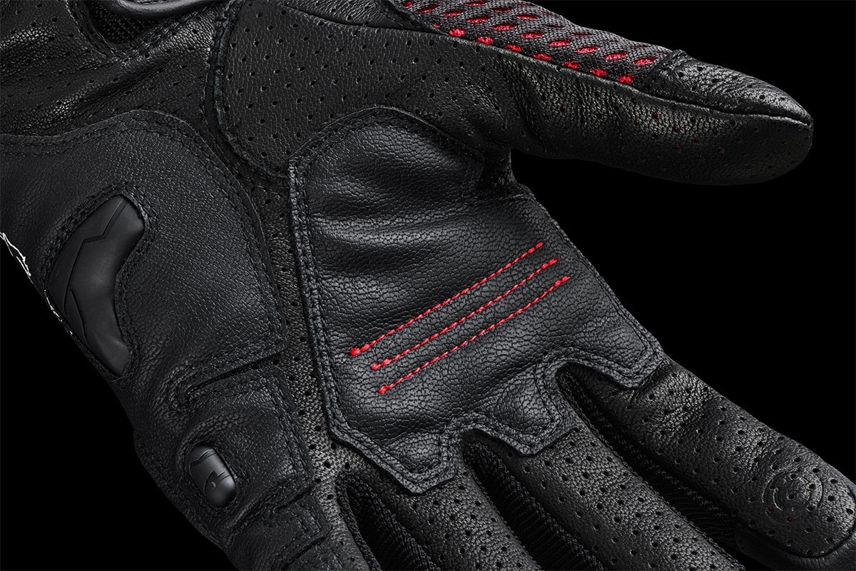 Deschiderile și perforațiile au fost plasate pentru a optimiza fluxul de aer prin mănușă, fără a compromite siguranța. 60% piele de capră; 25% poliester; 12% poliuretan; 3% elastan