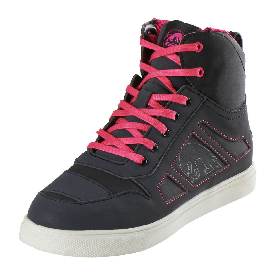 Pantofii noștri sport Angie D3O® acceptă provocarea de a combina un pantof cu un aspect hiper-cool cu cerințele unui pantof de motocicletă Furygan: protecții D3O® la gleznă, suport pentru gleznă, marcaje reflectorizante și impermeabilitate. Inspirați direct de lumea skatepark-urilor, cu aceștia veți menține viu spiritul libertății pe cele două roți. - Se livrează cu o pereche de șireturi roz sau aurii, în funcție de culoare, și o pereche suplimentară de șireturi negre. - Se asortează cu pantofii bărbătești Get Down. - Silueta înaltă a modelului Angie D3O® oferă suport suplimentar pentru gleznă și protecție pentru motociclism. Poliester de înaltă tenacitate. Poliester cu o greutate de 600 denieri sau mai mult (colanții subțiri cântăresc aproximativ 10 denieri). Cu cel puțin un strat pentru a ține fibrele împreună, PHT oferă o rezistență mai mare decât poliesterul standard. Piele sintetică PU. Cauciuc.