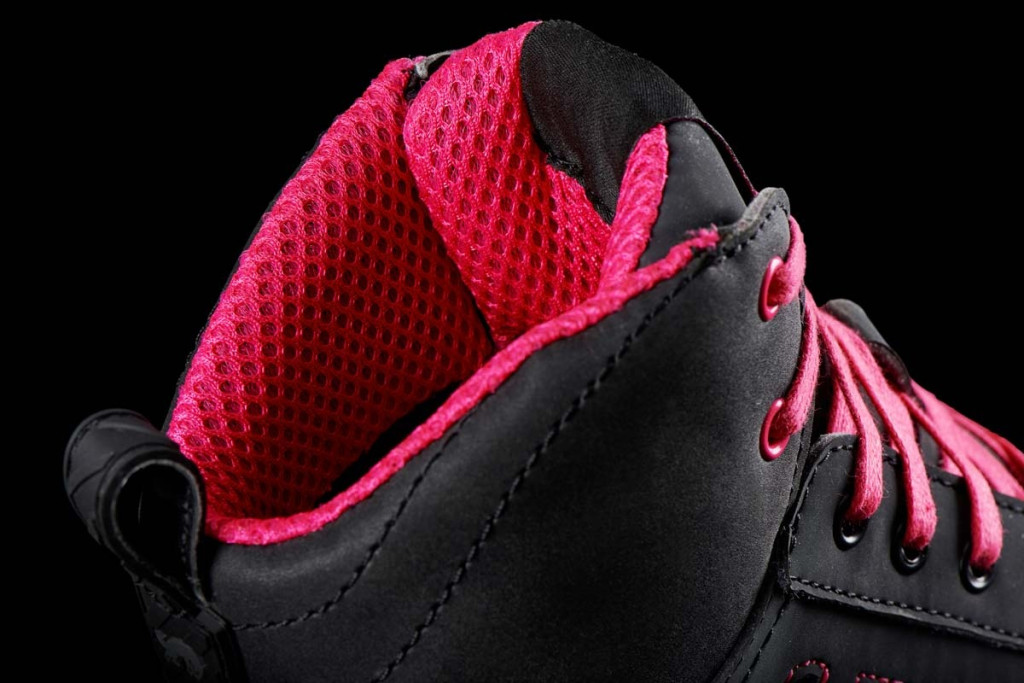 Pantofii noștri sport Angie D3O® acceptă provocarea de a combina un pantof cu un aspect hiper-cool cu cerințele unui pantof de motocicletă Furygan: protecții D3O® la gleznă, suport pentru gleznă, marcaje reflectorizante și impermeabilitate. Inspirați direct de lumea skatepark-urilor, cu aceștia veți menține viu spiritul libertății pe cele două roți. - Se livrează cu o pereche de șireturi roz sau aurii, în funcție de culoare, și o pereche suplimentară de șireturi negre. - Se asortează cu pantofii bărbătești Get Down. - Silueta înaltă a modelului Angie D3O® oferă suport suplimentar pentru gleznă și protecție pentru motociclism. Poliester de înaltă tenacitate. Poliester cu o greutate de 600 denieri sau mai mult (colanții subțiri cântăresc aproximativ 10 denieri). Cu cel puțin un strat pentru a ține fibrele împreună, PHT oferă o rezistență mai mare decât poliesterul standard. Piele sintetică PU. Cauciuc.