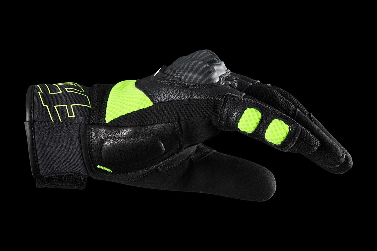 Adoptând coduri stilistice mai contemporane și sportive, Galax Evo rafinează conceptul predecesorului său: o mănușă de motocicletă omologată pentru vară, oferind ce e mai bun în materie de ușurință, confort și ventilație. - Întăritura palmei este fabricată din piele de capră, pentru rezistență suplimentară în această zonă solicitată intens. Poliester de înaltă tenacitate. Poliester cu o greutate de 600 denari sau mai mult (colanții subțiri cântăresc aproximativ 10 denari). Cu cel puțin un strat pentru a menține fibrele împreună, PHT oferă o rezistență mai mare decât poliesterul standard. Piele de capră. Combinând suplețea și rezistența, pielea de capră oferă o protecție de primă clasă, oferind în același timp o senzație de neegalat pentru ghidon. Airmesh. Material sintetic tridimensional cu proprietăți excelente de circulație a aerului, amortizare bună și capacități de uscare rapidă. Strângere precisă a încheieturii mâinii.