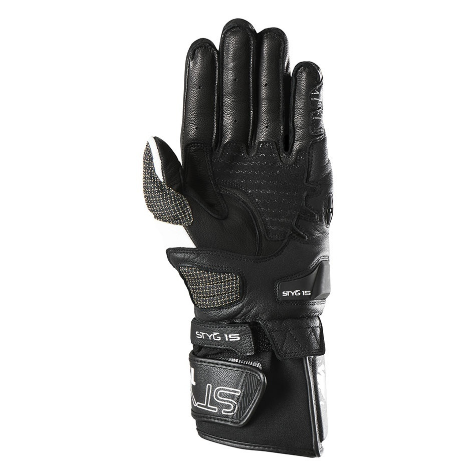 Datorită angajamentului nostru față de curse și datelor pe care le-am colectat pe pistă, am dezvoltat gama STYG. STYG15 încorporează ergonomia excepțională a STYG20, mănușile de top folosite de cei mai buni piloți din lume, pentru a oferi o mănușă de pistă de înaltă performanță, accesibilă cât mai multor persoane. - Disponibilă într-o versiune scurtă: STYG10. - Disponibilă într-o versiune Lady. Piele de capră. Combinând suplețea și rezistența, pielea de capră oferă o protecție de primă clasă, oferind în același timp o senzație de neegalat la ghidon. Manșetă cu strângere dublă. Se potrivesc perfect mănușilor atât pe încheieturi, cât și pe jachetă, pentru a asigura confort și siguranță în fiecare deplasare. Cusături cu degetele poziționate pe exterior. Elimină orice potențial disconfort, pentru un confort mai bun și o senzație perfectă la comenzi. Preformate. Se întind pe degete.